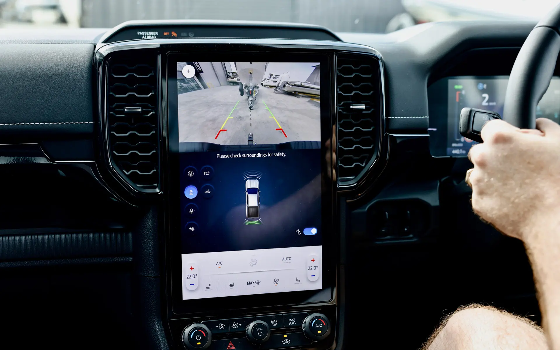 - 12-inch portrait infotainment touchscreen