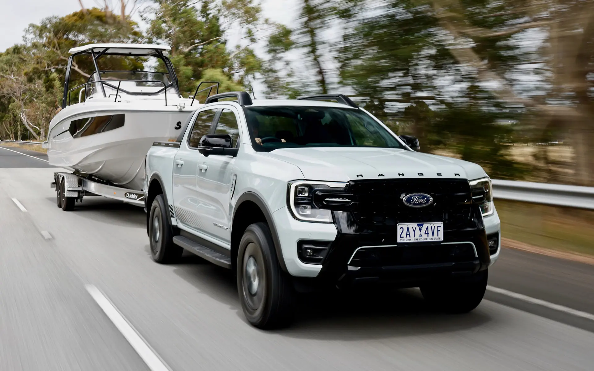 Ford says the Ranger PHEV has the best towing capability of any plug-in hybrid dual-cab ute on sale currently, with the ability to tow up to 3500kg (braked), with a total payload capacity of 973kg in the XLT – dropping to 808kg for the range-topping Stormtrak.