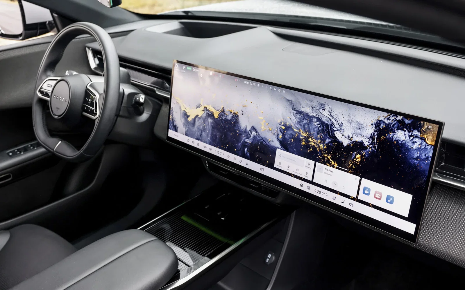 What is unique about the interior screen and technology?