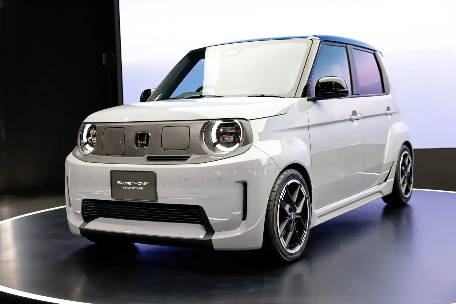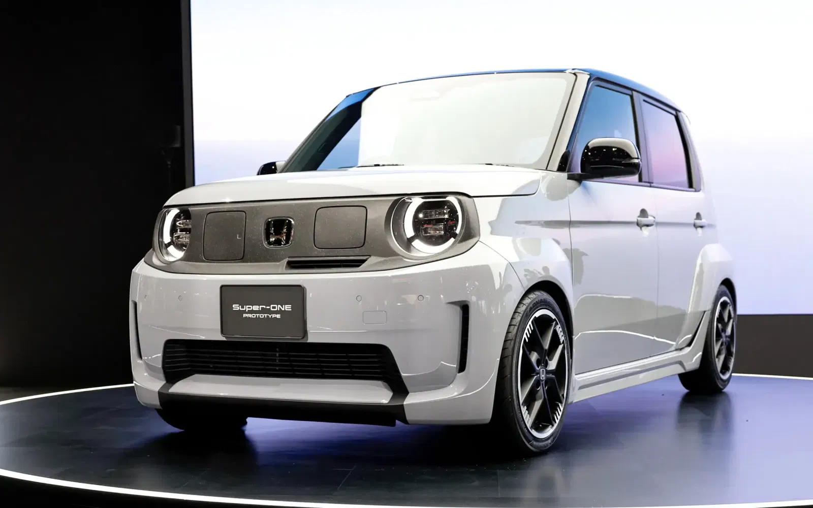 The Super-ONE is a small electric vehicle derived from Honda’s N-One Kei car, designed primarily for city driving with compact dimensions and agile handling.