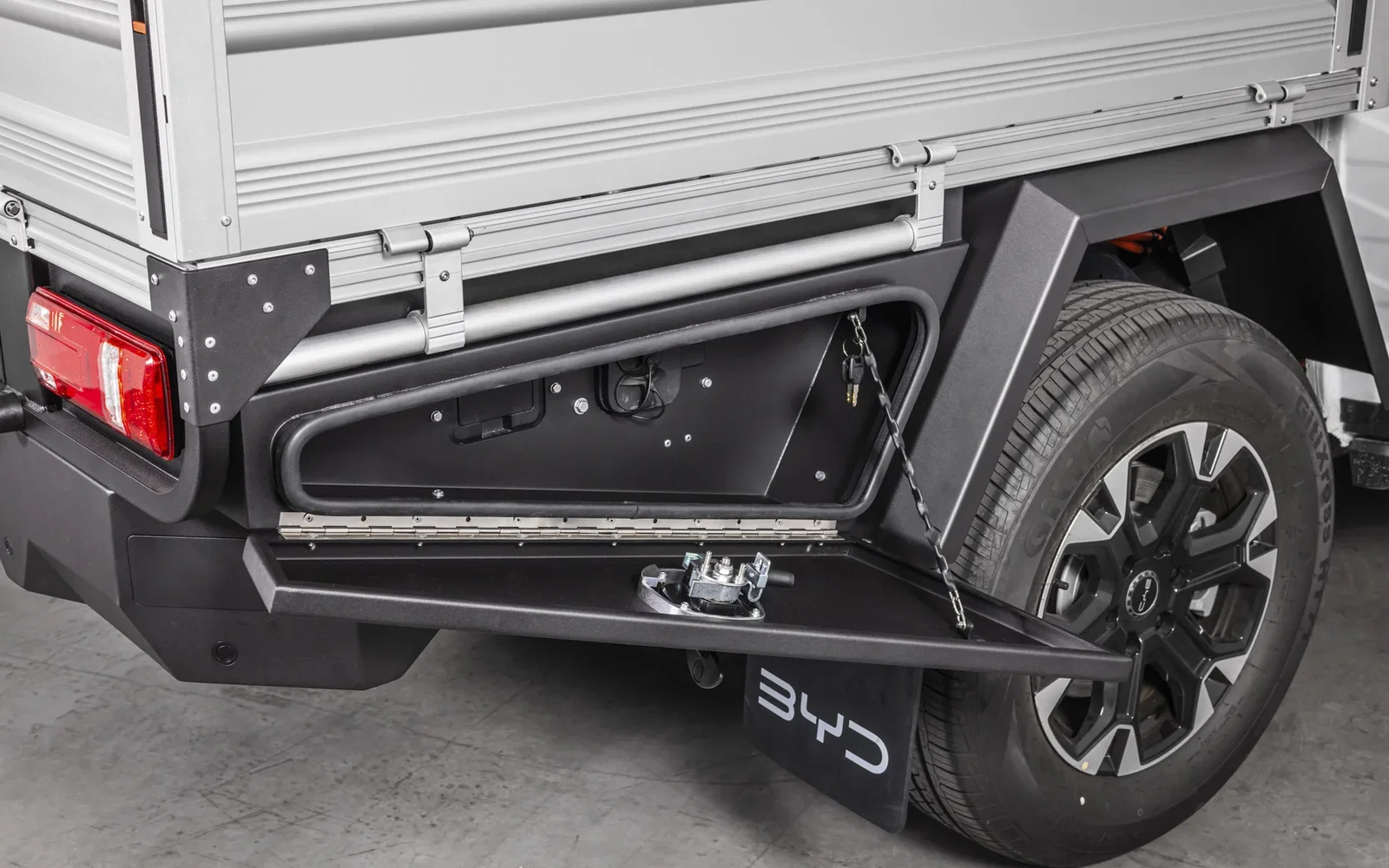 The tray accessory includes eight integrated tie-down points, two lockable storage boxes, and an optional trundle tray.