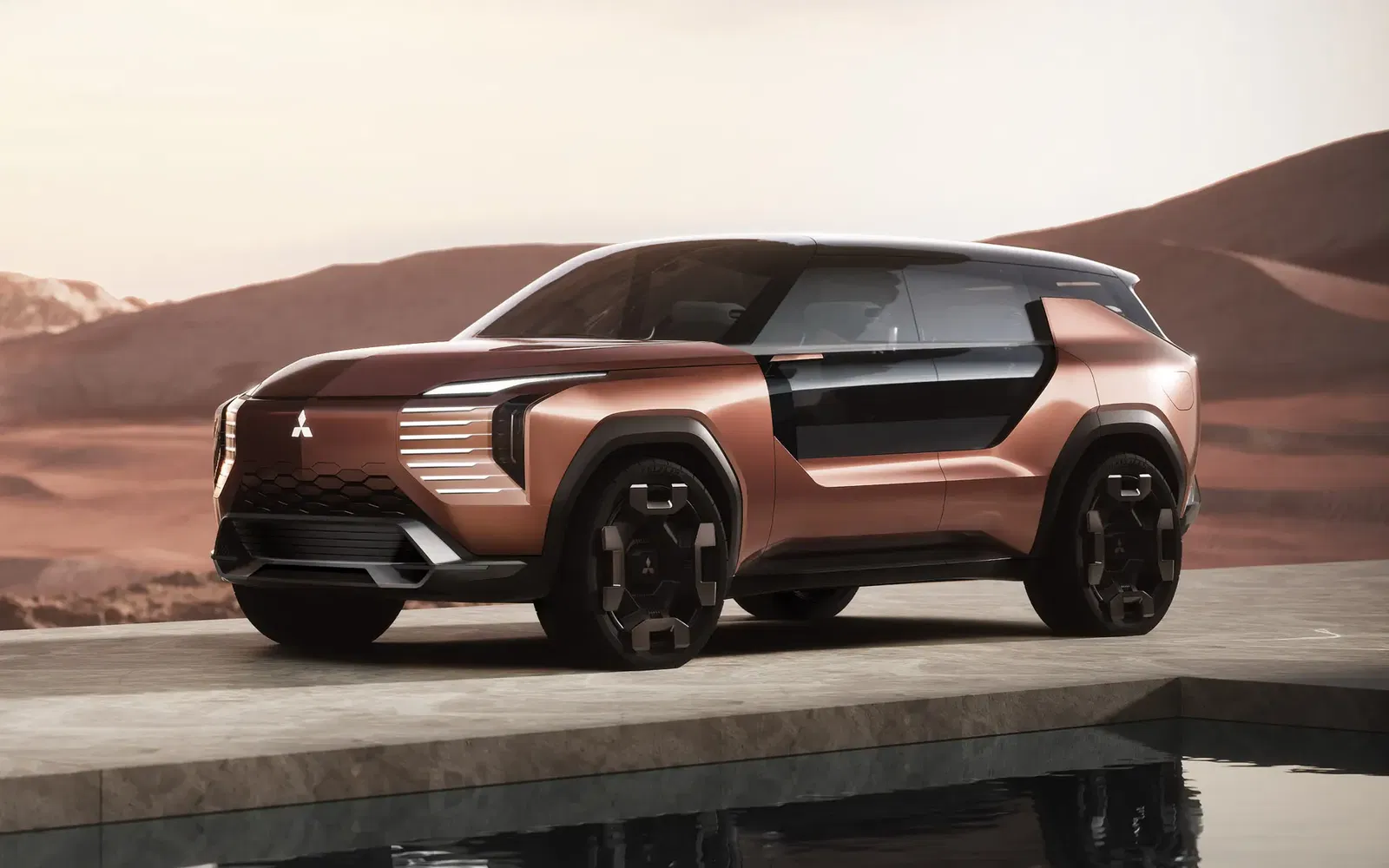 The vehicle previews future design and technology directions for the brand, combining electrification with Mitsubishi’s Super-All Wheel Control (S-AWC) system.