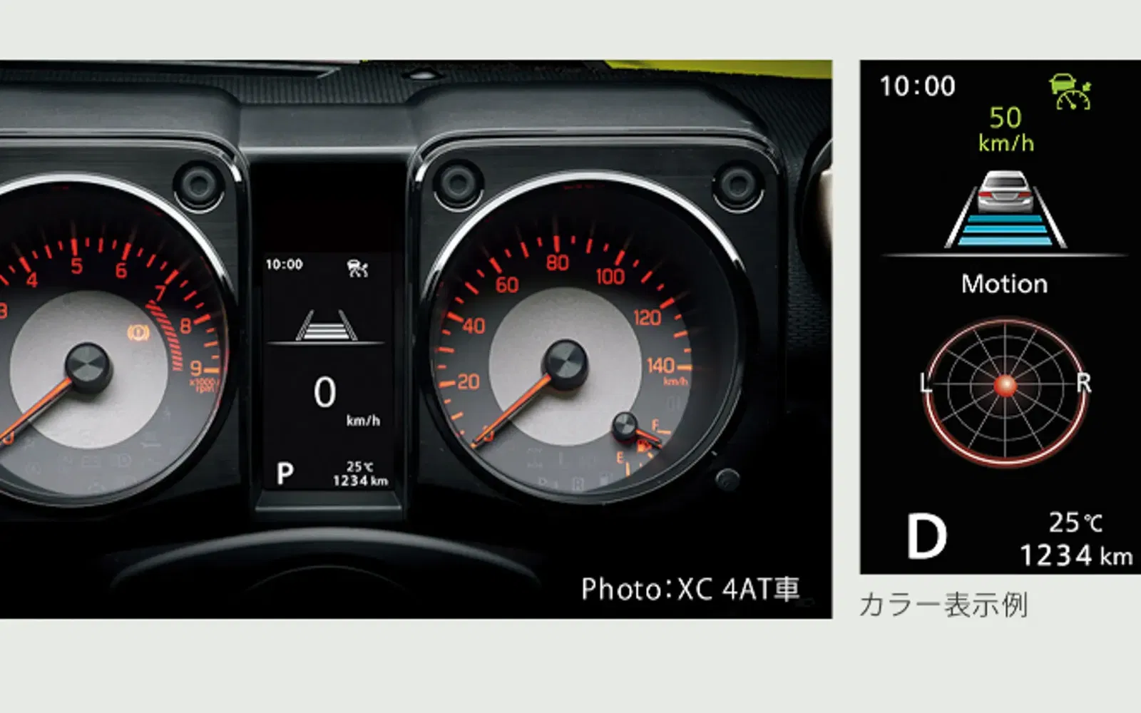 As reported by the Japanese Blog, Creative Trend, a new 4.2-inch digital display has been integrated into the instrument cluster on the updated Jimny, now sitting between the analogue gauges.