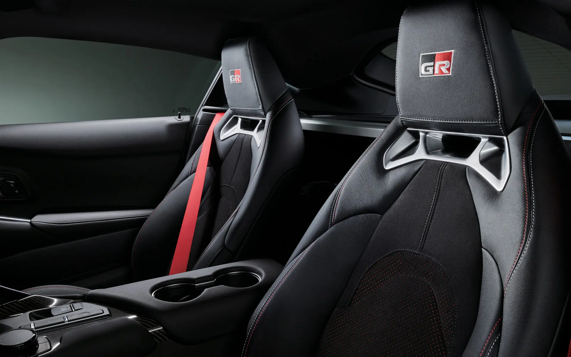 The Track Edition interior also receives black alcantara trim, headrests embroidered with the GR logo, red seatbelts and a red ring around the shifter for cars specced with a manual transmission.