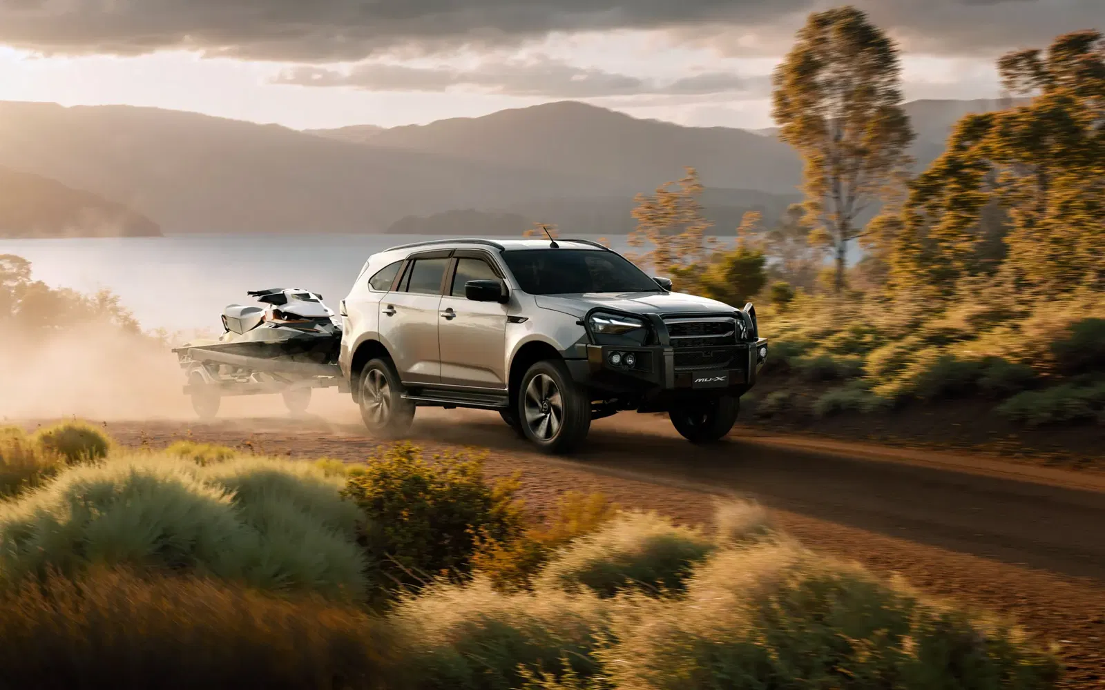 The MY25.5 Isuzu MU-X LS-T 4X4 Tour Mate gets a tow bar kit, a 50mm tow ball, a 12-pin flat wiring harness, an electric brake controller, slimline weather shields, a boot cargo liner, rubber floor mats and wireless phone charging.