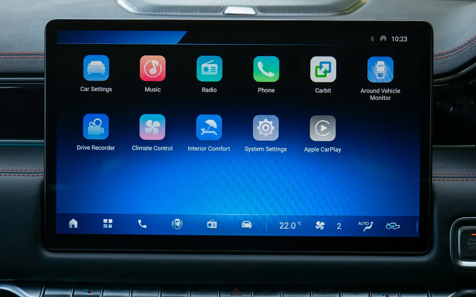 The 14.6-inch infotainment touchscreen is fairly easy to navigate once you get your head around it. The bottom navigation bar makes it particularly easy to make your way through the system. It’s compatible with wireless Apple CarPlay from launch, although Tunland owners will have to wait until Q1 2026 for Android Auto, which will be available through an update from a Foton service centre.