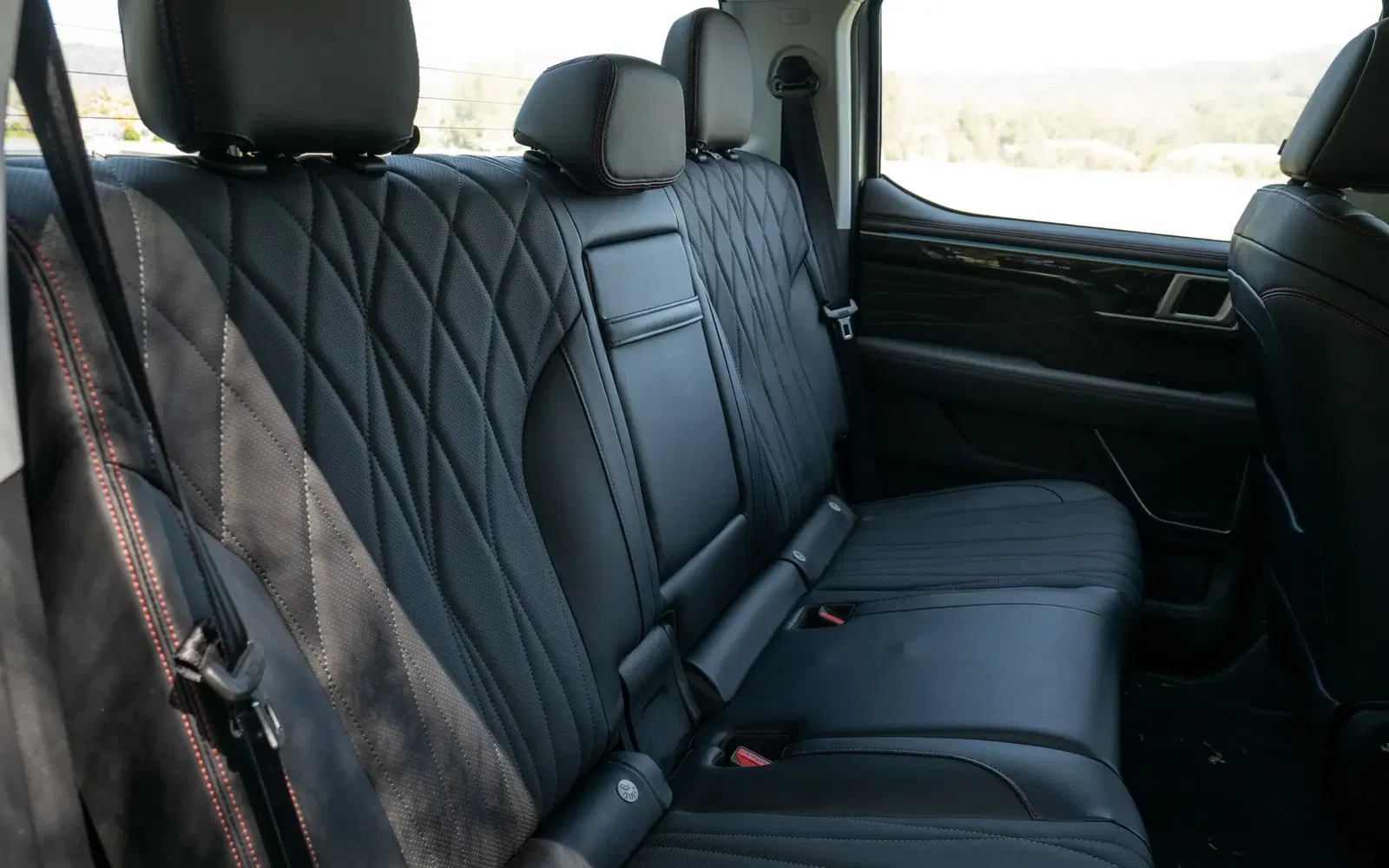 In the rear seat of the 2026 Foton Tunland, I found of plenty of knee-room behind my own driving position (5’11”) as well as strong headroom and decent shoulder room.