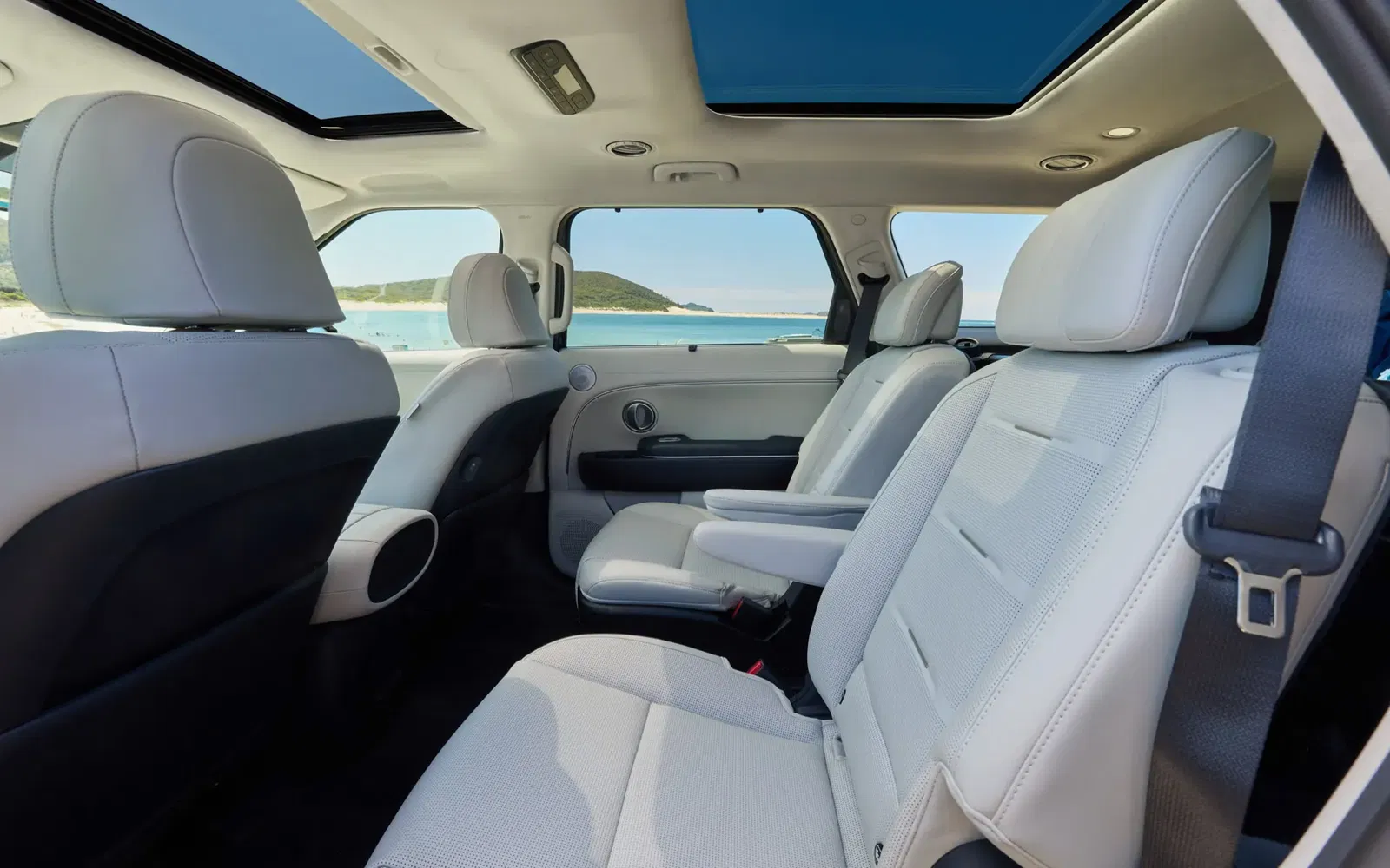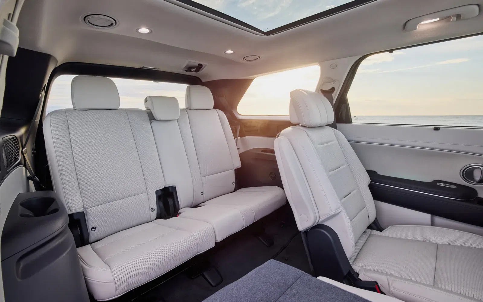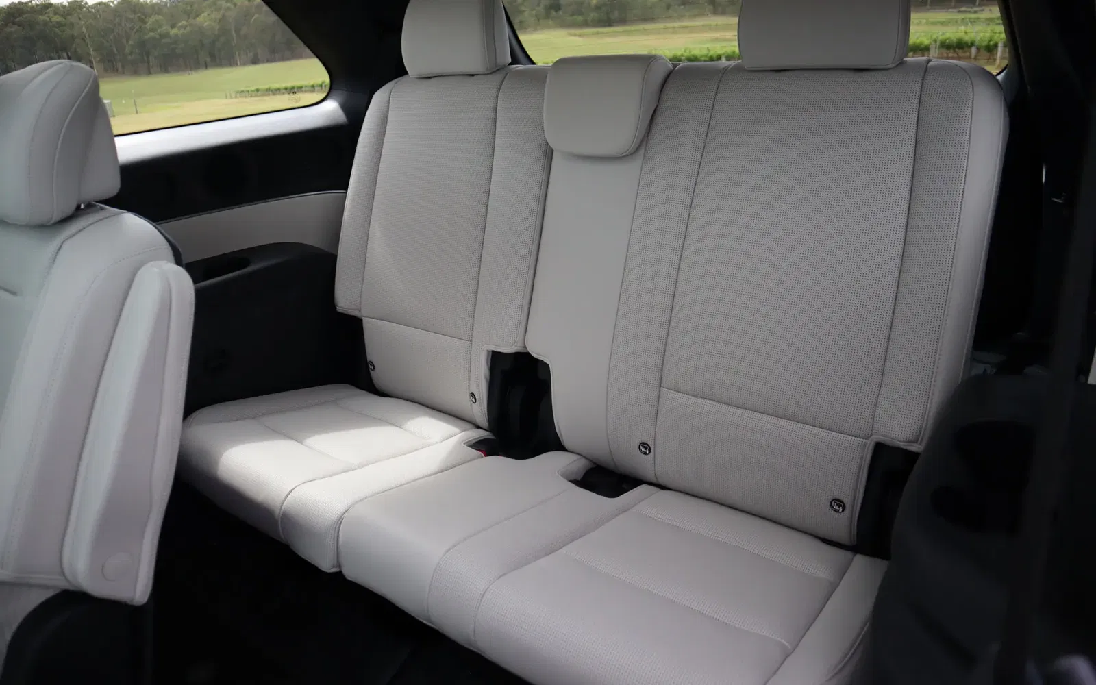 Across both variants, second-row passengers have access to two UBS-C ports, air conditioning controls, heated and ventilated outboard seats, useful cupholders in the doors, large seat pockets behind the front seats, and side window shades.
