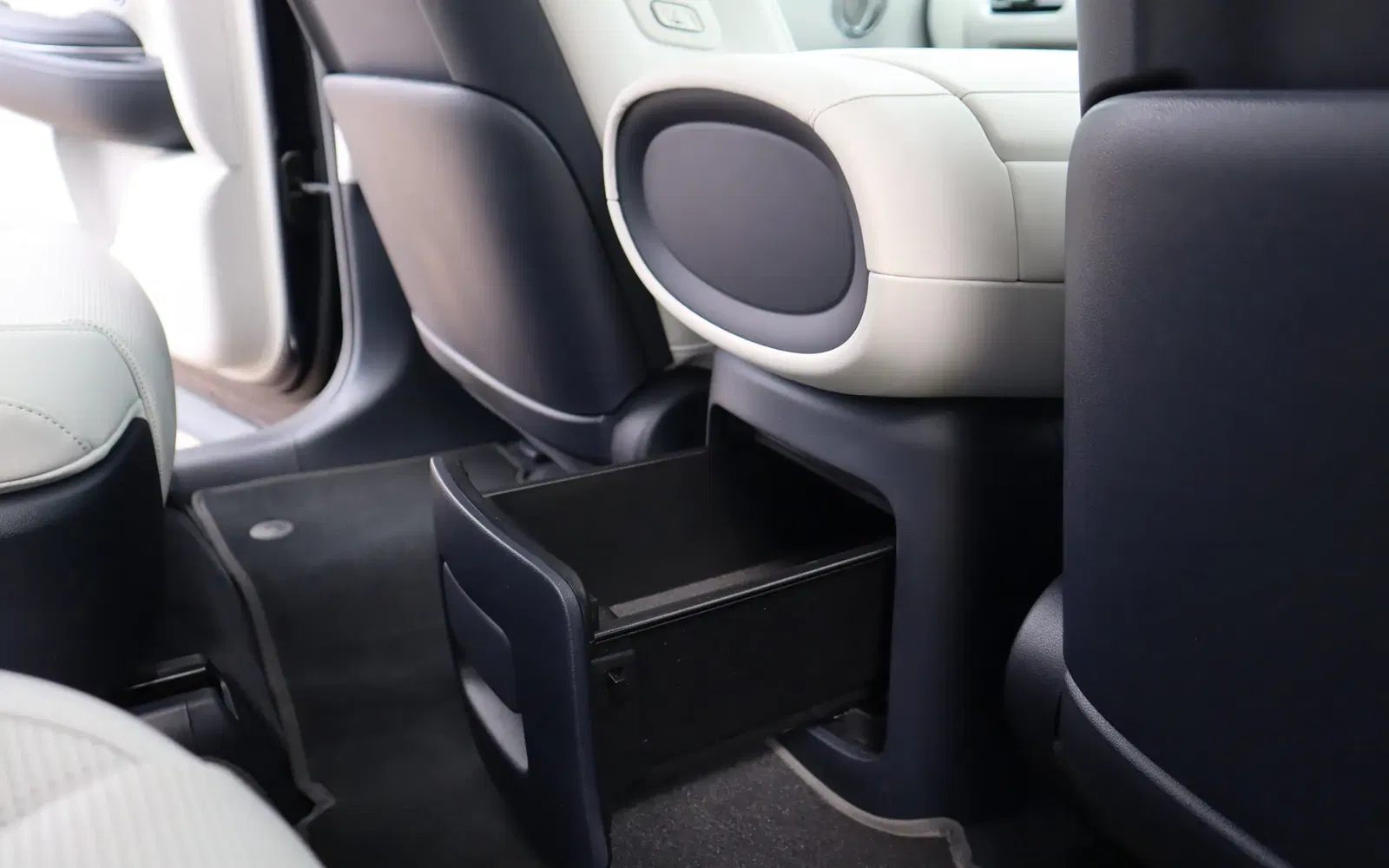 However, some of these amenities aren’t exactly where you’d expect them to be. You’ll find the air conditioning controls and air vents on the ceiling, and the USB-C ports on the sides of the front seats instead of behind the front centre console. Instead, a drawer occupies this space, which is a great place to store smaller items.