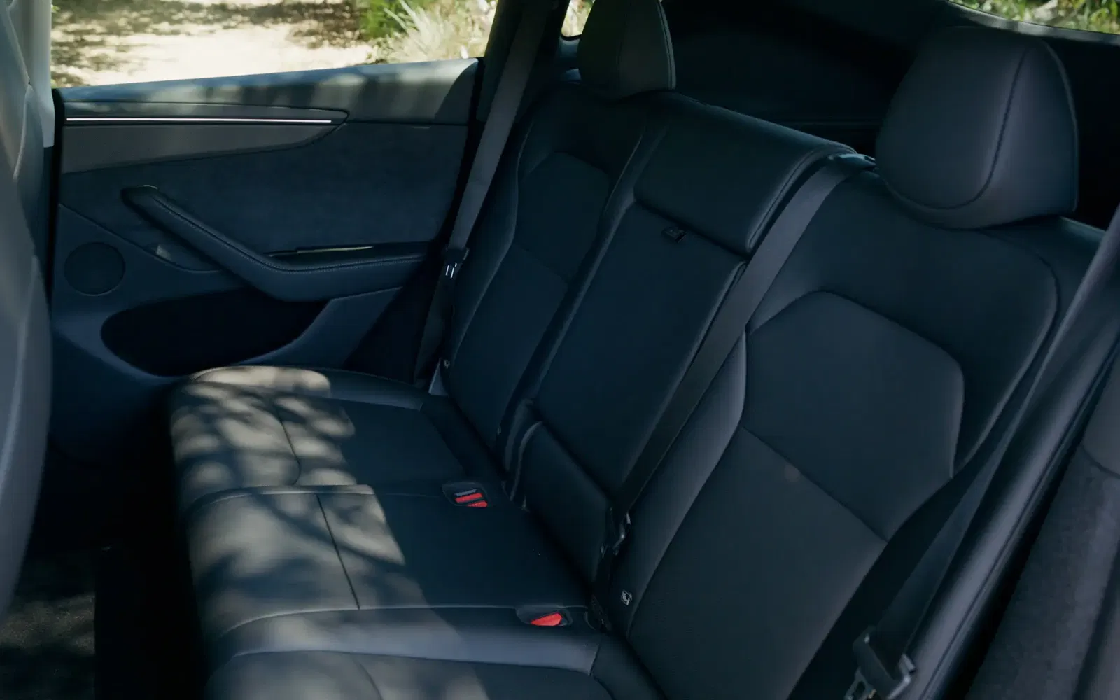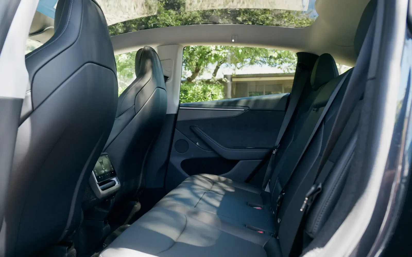 The rear of the Model Y remains one of the best in the segment for passenger comfort. Legroom is generous, allowing tall adults to stretch out, and the flat floor means the middle seat is genuinely usable. Headroom is excellent, even with the sloping roofline, and the seating angle is superior to many rivals.